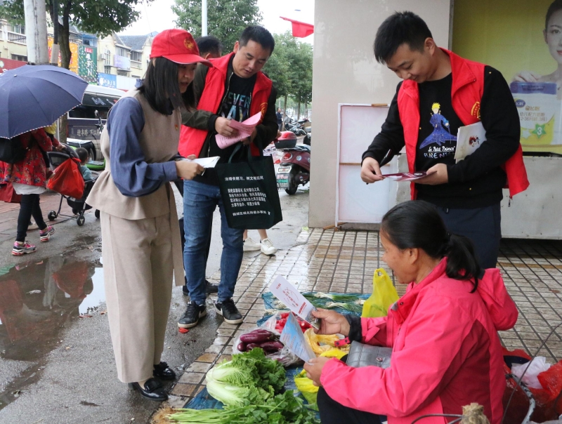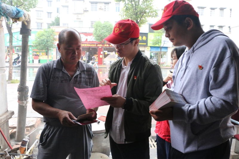 上午九點,雖漫天細(xì)雨,志愿者的熱情卻不減?;顒迂?fù)責(zé)人跟大家交代好注意事項后,志愿者們分隊前往社區(qū)挨家挨戶發(fā)放綜治民意調(diào)查、“三城同創(chuàng)”、掃黑除惡、禁毒等各類宣傳手冊,耐心給群眾講解宣傳冊內(nèi)容,讓市民了解并積極參與幸福社區(qū)的創(chuàng)建工作。