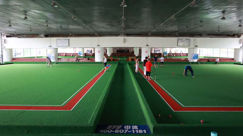 湖天橋下建成了標準、規(guī)范的連片門球場地