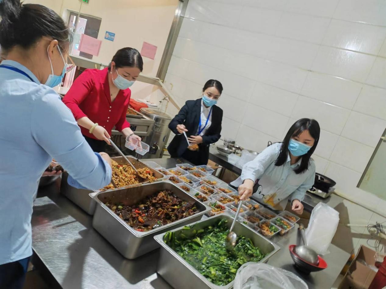 面對疫情變化,公司食堂工作人員出行受限,眼看國資系統(tǒng)抗疫人員,市城建投公司、市交建投公司包保社區(qū)志愿者、醫(yī)務人員和駐守大本營的守護者用餐無法保證時,市城建投公司領(lǐng)導率先垂范,帶領(lǐng)“大本營”守護者們走進食堂,紛紛化身洗菜工、切菜員、廚師、打菜員……自己動手,煮飯炒菜,打包送餐。“剛開始挺怕,壓力也大,頭一回用大型的廚房設備,挑戰(zhàn)兩三百人的用餐,心里在打鼓,怕操作不當,耽誤大家就餐,怕味道不好等,還是大家的鼓勵和齊心協(xié)力,讓我們圓滿完成任務?!焙笄诒U辖M工作人員笑道,“掌勺不易,還好最后大家都挺滿意”。