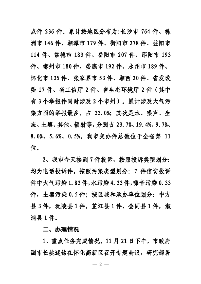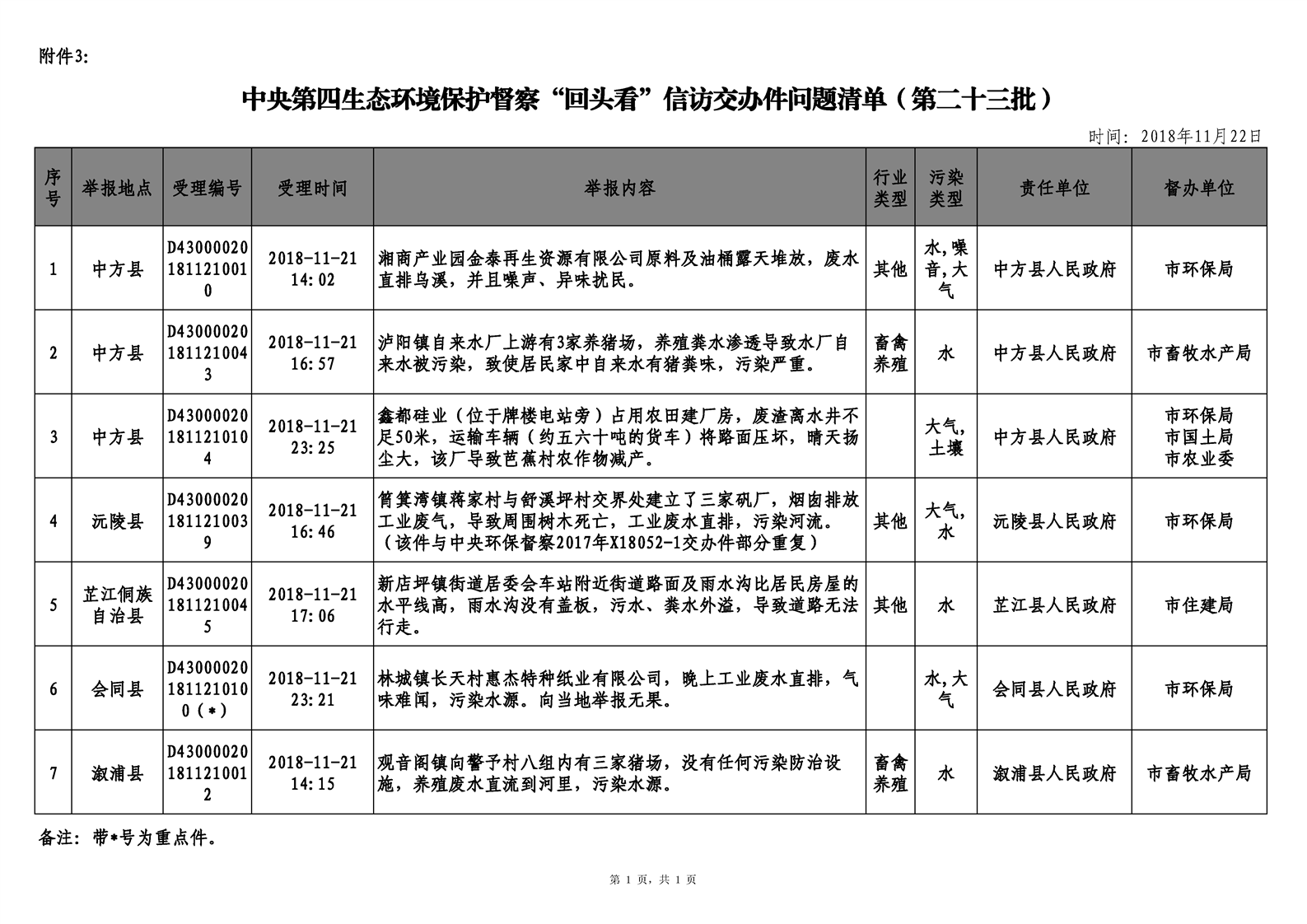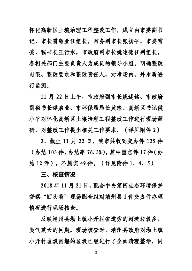 第二十三期 懷化市配合中央生態(tài)環(huán)境督察回頭看工作專報