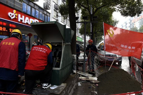 1月29日,受惡劣天氣以及用電負(fù)荷劇增雙重影響,鶴城區(qū)懷西路一電力設(shè)施出現(xiàn)故障,導(dǎo)致周邊部分居民供電中斷。國網(wǎng)懷化供電公司配電運檢室共產(chǎn)黨員服務(wù)隊接警后,第一時間趕到故障現(xiàn)場,設(shè)置好安全隔離措施范圍后便立即查找故障原因、制定搶修方案,縮小電力中斷面積。