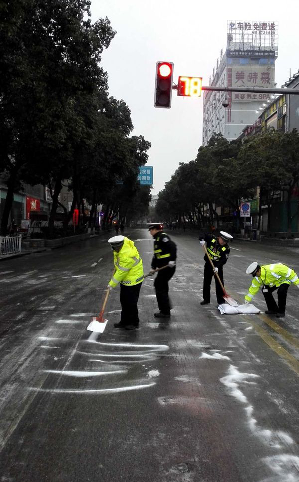二、城區(qū):步步高路口、火車站路口、麻陽路口、城北路段、懷西高速路口通過市政部門撒鹽除冰,民警現(xiàn)場值守,交通秩序正常。環(huán)城北路往黃金坳方向出城口處上坡路段結(jié)冰嚴重,過往車輛需謹慎慢行或選擇其他線路繞行。(通訊員 李霜萍)