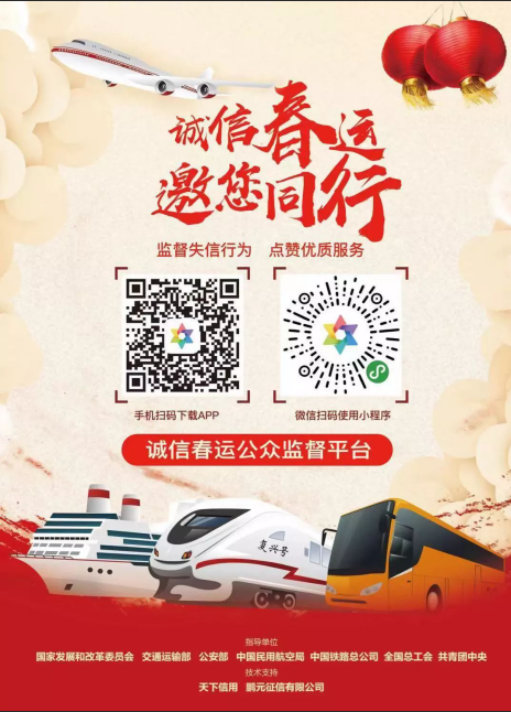 從2017年開始,國家發(fā)展改革委會同公安部、交通運(yùn)輸部、民航局、鐵路總公司等部門和單位建立了“誠信春運(yùn)公眾監(jiān)督平臺”,鼓勵旅客隨時隨地監(jiān)督春運(yùn)中的失信和不文明行為,點(diǎn)贊優(yōu)質(zhì)服務(wù)和好人好事,取得積極成效。