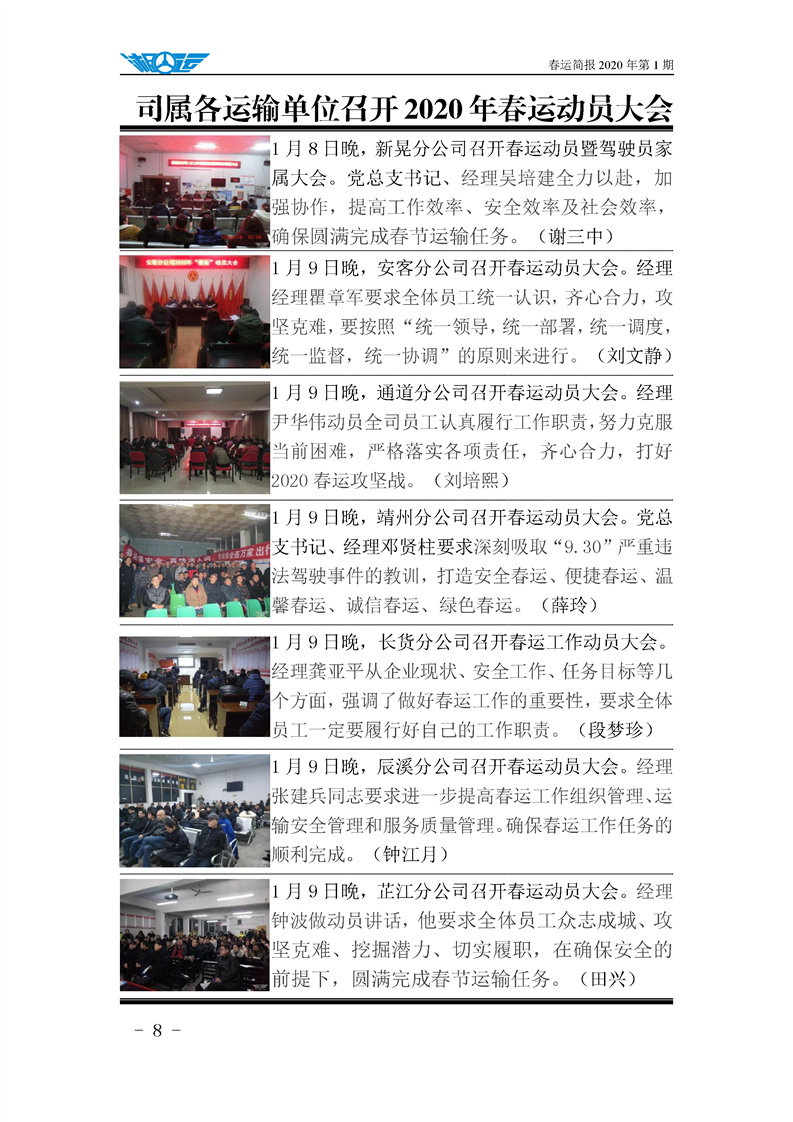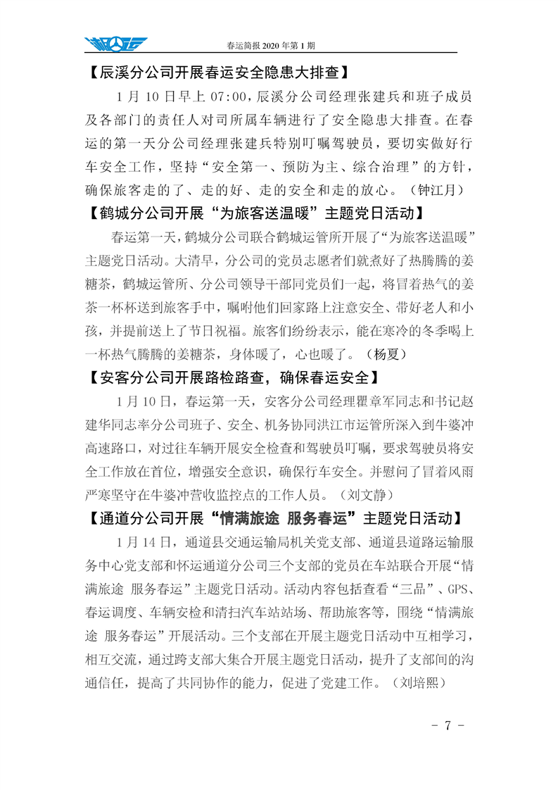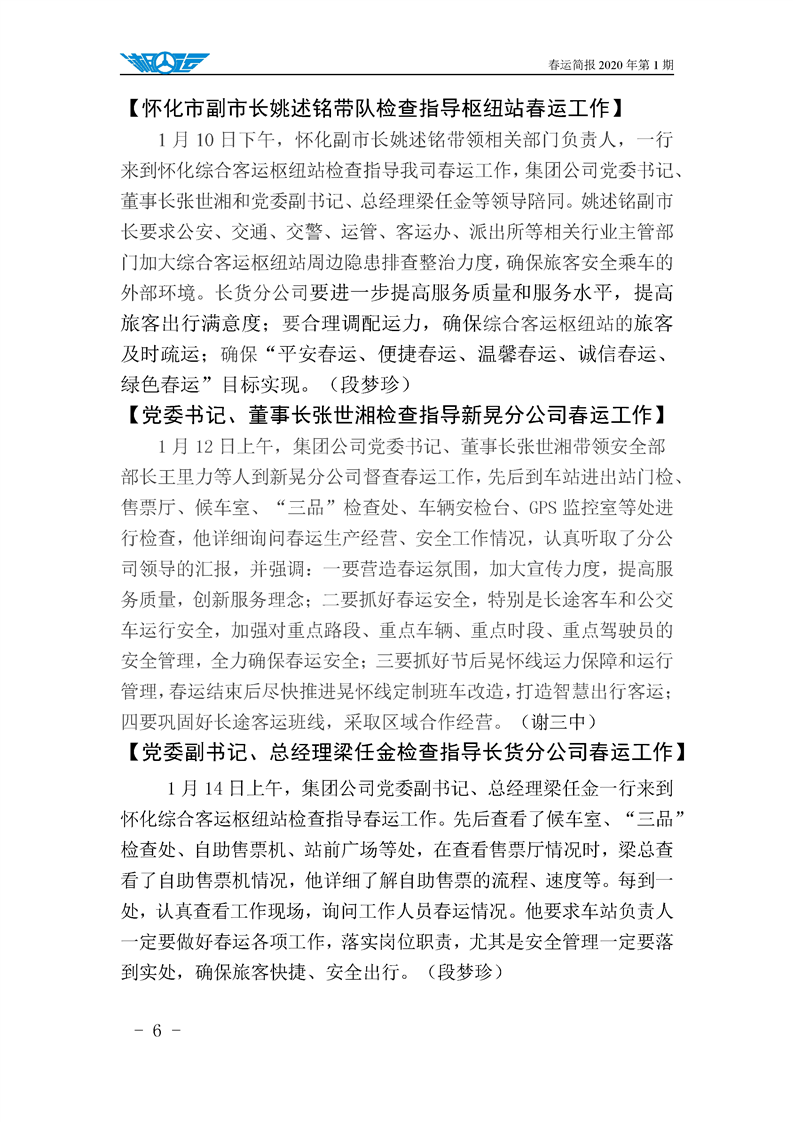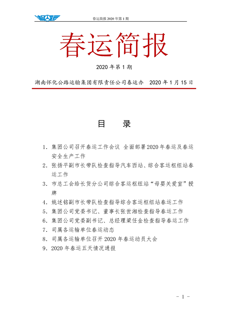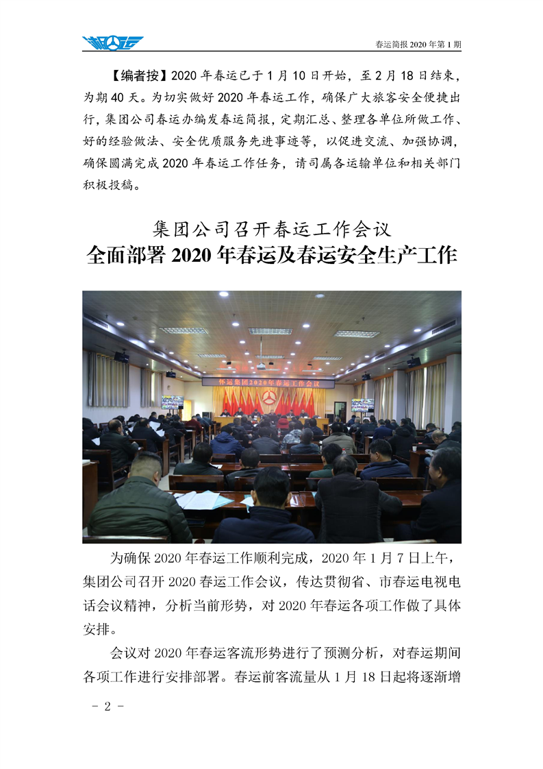 懷運(yùn)集團(tuán)春運(yùn)簡報 2020 年第 1 期