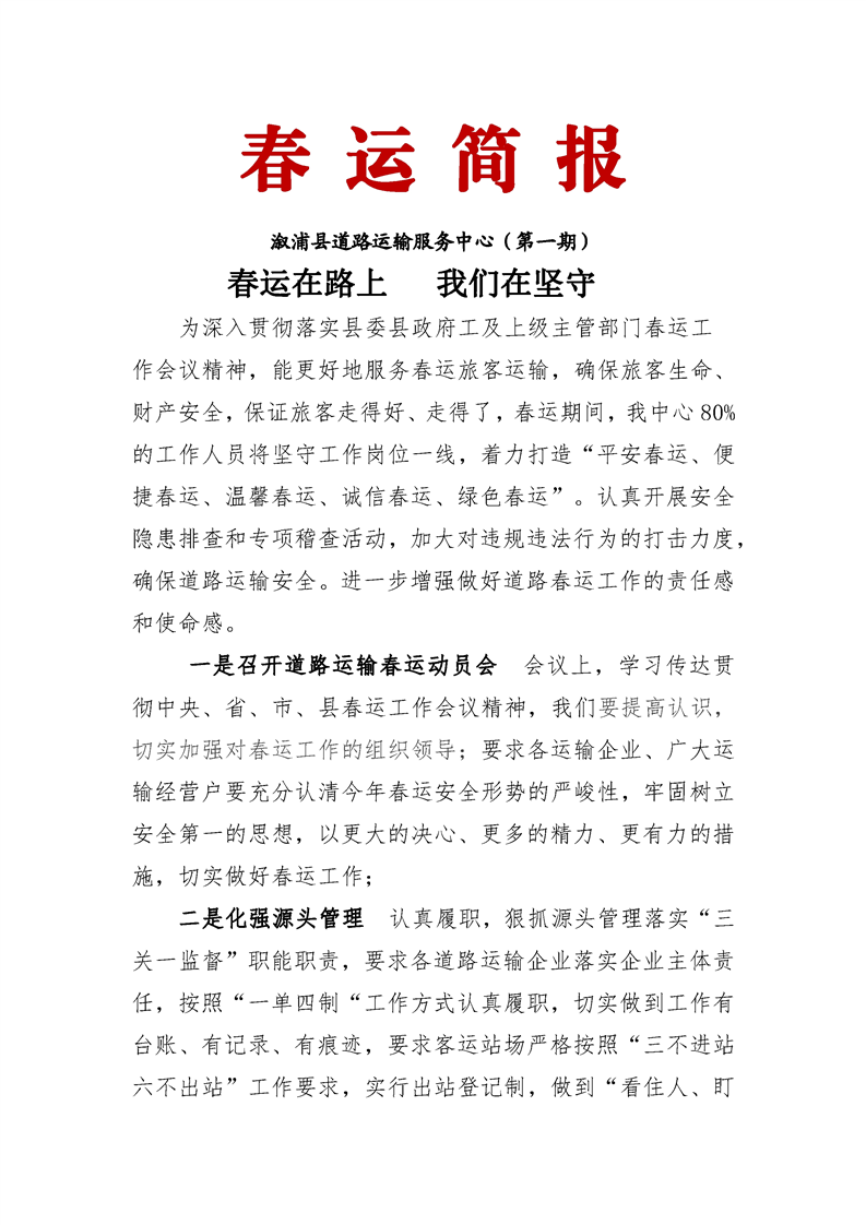 溆浦縣道路運輸服務中心春運簡報(第一期)