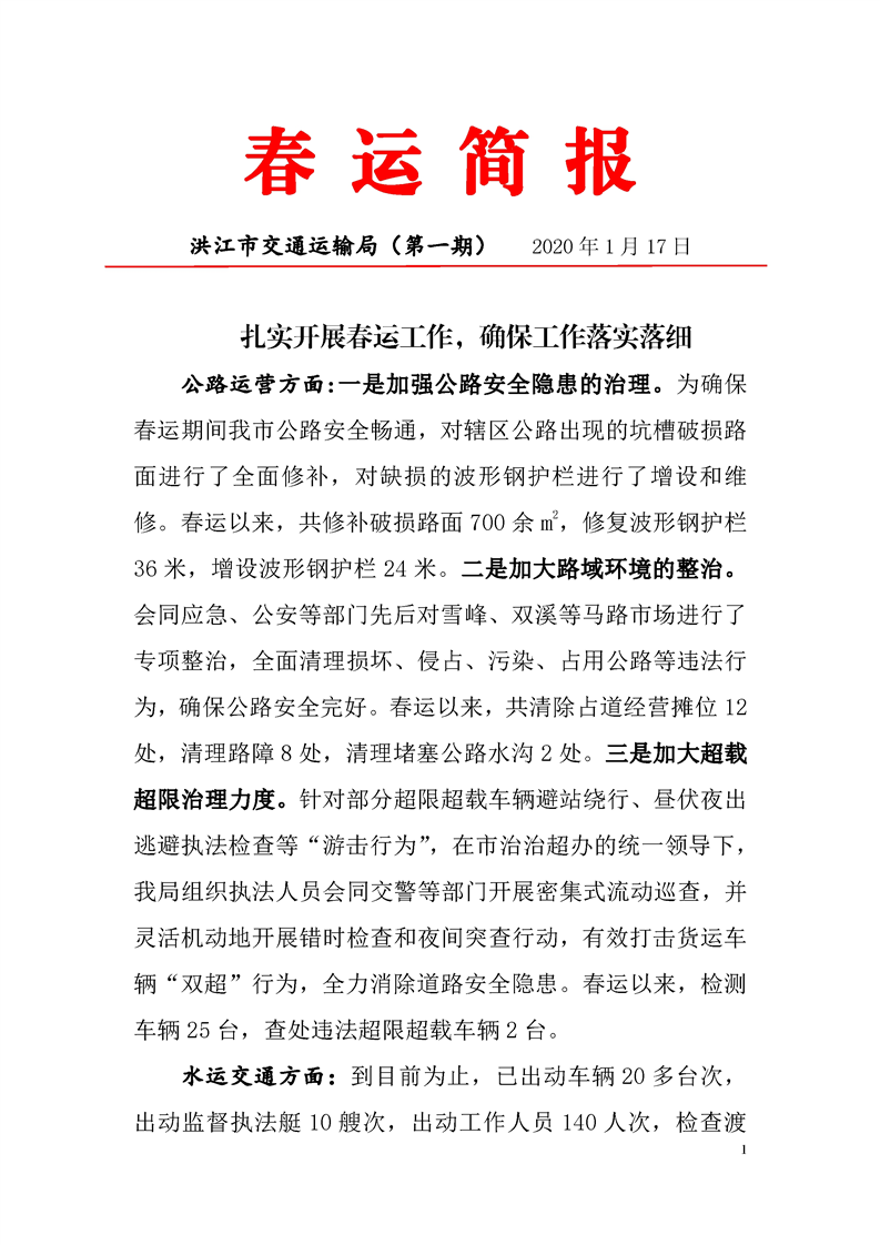 洪江市交通運輸局春運簡報 第一期