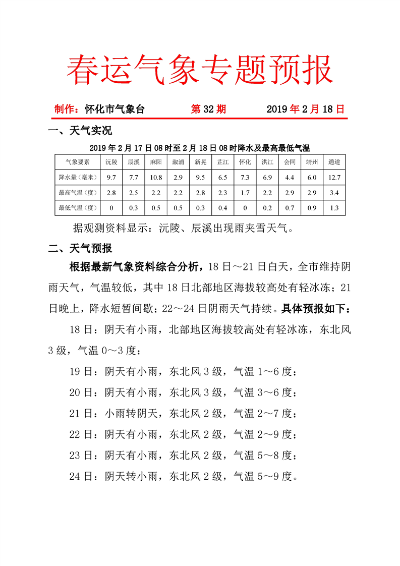 春運(yùn)氣象專題預(yù)報(bào)(第32期)