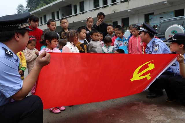 “六一”國際兒童節(jié)即將來臨,5月27日,湖南省辰溪縣公安局組織青年民警,帶著文具、書包、水果等禮物,來到該縣十分偏僻的田灣鎮(zhèn)選場村,和村里的留守兒童們提前過“六一”節(jié),讓留守兒童們感受了節(jié)日的氛圍和祖國大家庭的溫暖?;顒又校窬€為同學(xué)們同學(xué)們講解了國旗、黨旗的含義,號召同學(xué)們從小熱愛祖國、熱愛黨,立志做一個對社會有用人,并一起升起了國旗。