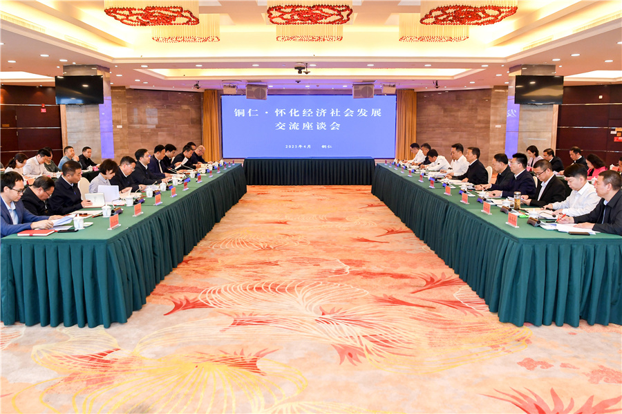 (4月22日,懷化市黨政代表團(tuán)赴銅仁市學(xué)習(xí)考察。圖為銅仁·懷化經(jīng)濟(jì)社會發(fā)展交流座談會現(xiàn)場。)
