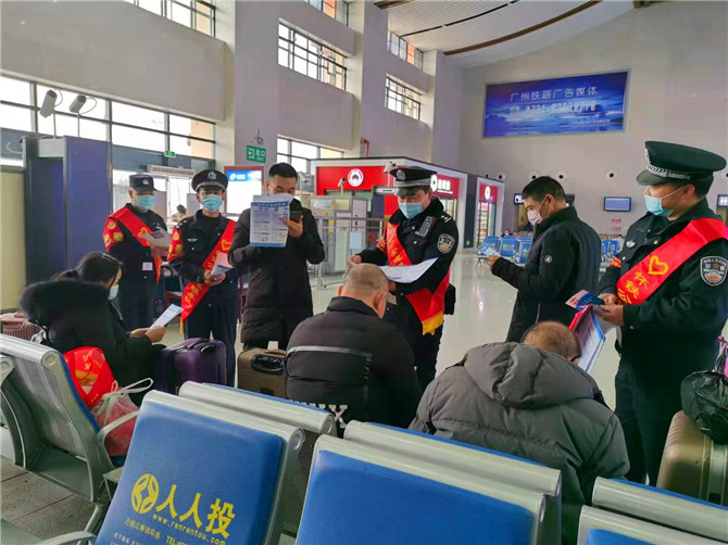 同時(shí),宣傳民警還結(jié)合當(dāng)前工作重點(diǎn),在候車室、出站口、售票廳等向旅客廣泛的開展防電信網(wǎng)絡(luò)詐騙宣傳、愛車護(hù)路宣傳、疫情防控宣傳、防扒安全防范宣傳等相關(guān)知識(shí),并給旅客發(fā)放了春運(yùn)安全出行手冊(cè),提醒旅客乘坐列車出行的需要注意的安全事項(xiàng)。