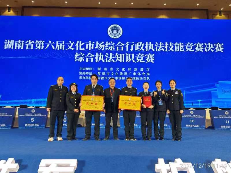 ????12月19日,湖南省第六屆文化市場綜合行政執(zhí)法技能競賽決賽在常德圓滿落幕。本次比賽為期三天,設(shè)置體能測試、政策法規(guī)知識、執(zhí)法文書制作及案卷歸檔、案卷糾錯(cuò)、平臺應(yīng)用及網(wǎng)絡(luò)案件證據(jù)固定、綜合執(zhí)法知識等6個(gè)科目。懷化市采用新老結(jié)合組隊(duì),全力以赴迎戰(zhàn),經(jīng)過激烈角逐,取得多項(xiàng)榮譽(yù):獲團(tuán)體單項(xiàng)案卷糾錯(cuò)三等獎、平臺應(yīng)用及網(wǎng)絡(luò)案件證據(jù)固定三等獎,沅陵縣文旅廣體局郭麗娟獲政策法規(guī)知識個(gè)人二等獎。