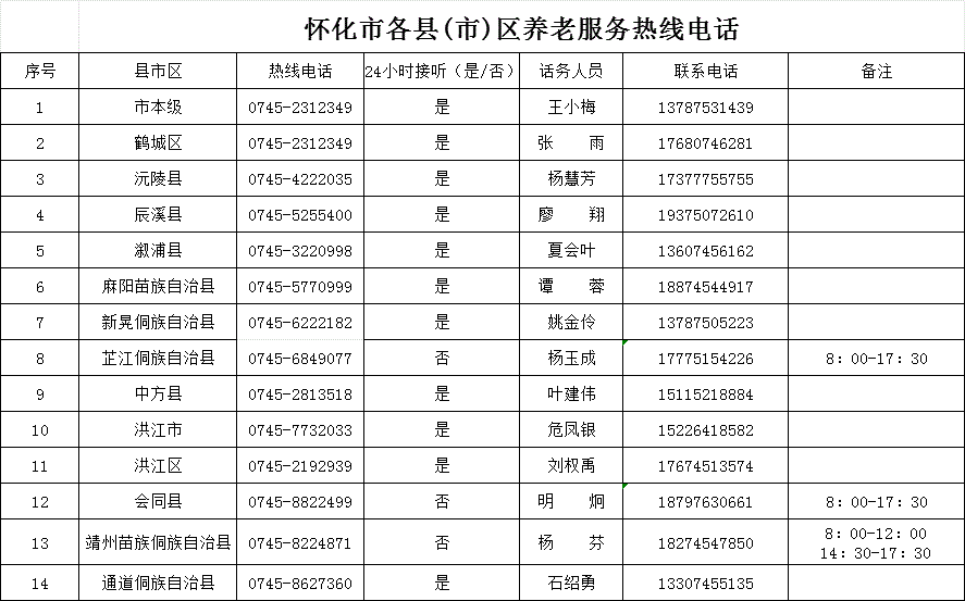關于向社會公布懷化市養(yǎng)老服務熱線和養(yǎng)老服務機構信息的公告