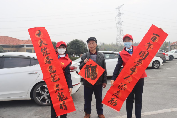 冬日暖陽,春節(jié)腳步臨近。1月11日,在G65包茂高速公路洪江服務區(qū)內(nèi),繁忙而有序。在服務區(qū)一側(cè),懷化分公司的“路燈”志愿者正在現(xiàn)場揮毫潑墨、寫福送春聯(lián),洋溢著濃濃的喜慶氛圍。活動現(xiàn)場引來許多司乘朋友圍觀,有的直接挑選已經(jīng)寫好的“成品”,有的則根據(jù)自己的需要邀請志愿者為他們“量身定制”。一幅幅紅春聯(lián)和金燦燦的“?!弊譂M載著新春祝福,傳遞著濃濃溫情。