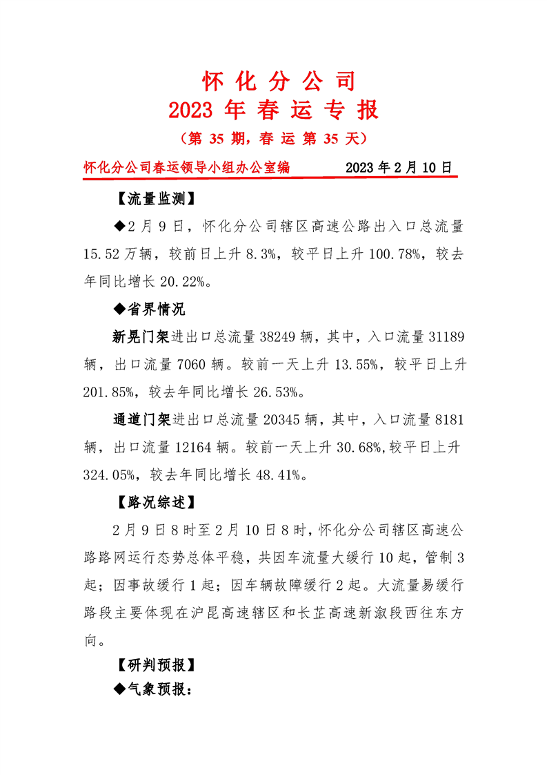 2023年懷化分公司春運(yùn)專(zhuān)報(bào)-第35期