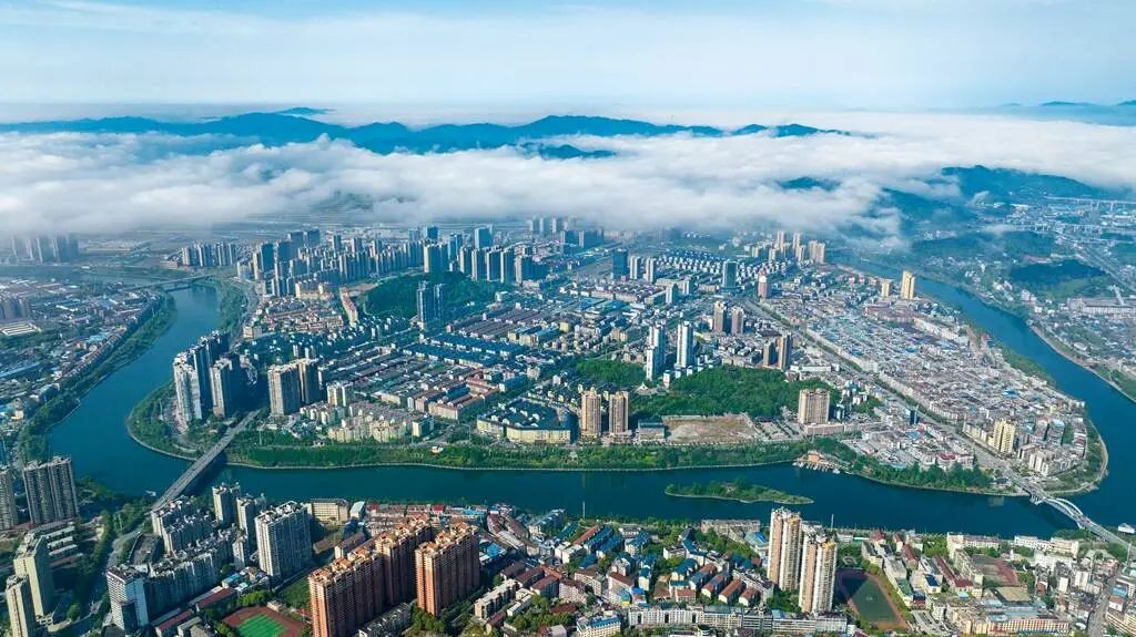 (藍(lán)天白云,碧水繞城,如詩如畫。)