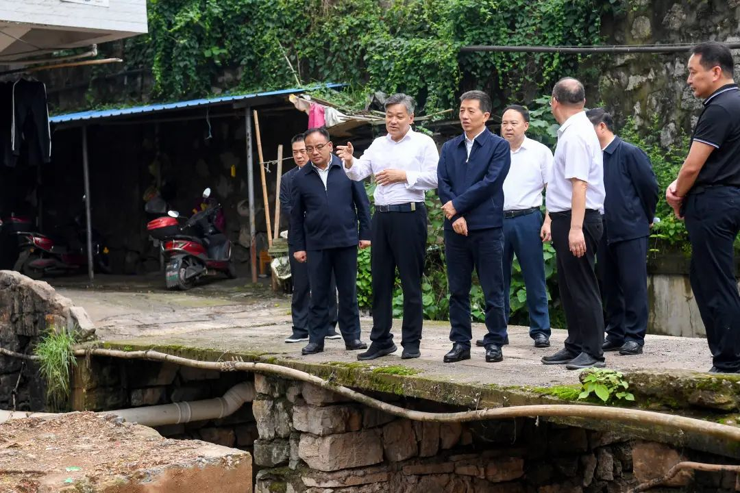 (5月12日上午,市委書記許忠建在城區(qū)調(diào)研督導(dǎo)生態(tài)環(huán)境問題。圖為許忠建來到茅谷沖溪片區(qū)察看了解雨污分流改造工程進(jìn)展情況。懷化日?qǐng)?bào)全媒體記者 楊智偉 攝)