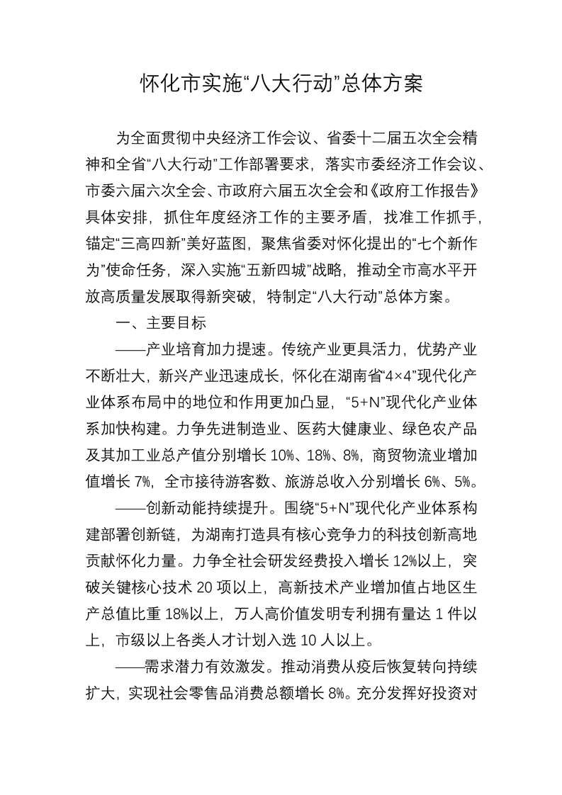懷化市實(shí)施“八大行動(dòng)”總體方案