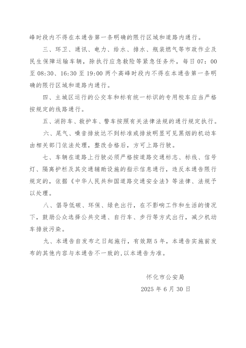 關(guān)于進(jìn)一步優(yōu)化懷化市主城區(qū)道路車輛限行管理的通告